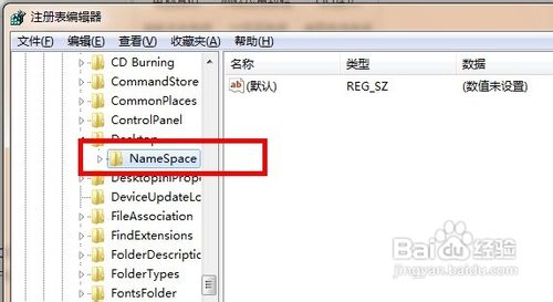 11,点击红色框内的“NameSpace”文件夹,右边出现“默认”等