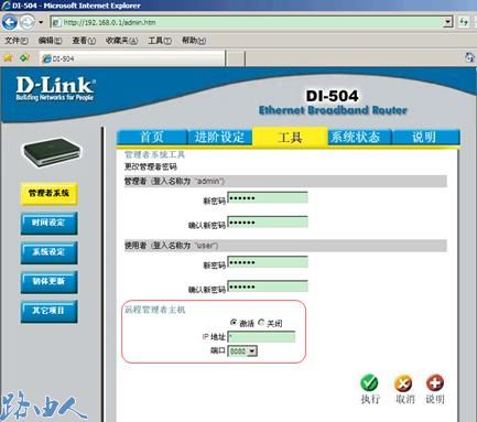 通过启用D-LINK路由器的远程管理功能,可以让其他人连接到你的D-LINK路由器内,从而帮助不懂的人检查配置工作 。