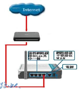一、把从前端友讯路由器接过来的网线接在DI-624+A LAN端口其中一个端口,而不要接在WAN端口