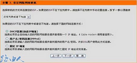 (2)电脑直接接ADSL或Cable Modem时,不需要做任何连接相关设置即可连至网络的话,选择DHCP连接;
