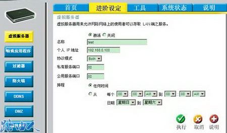 (2)虚拟服务器功能默认的设置是关闭的,需要激活此功能。