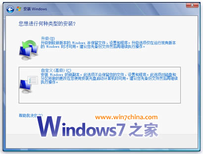 由于 Windows XP 无法使用“升级”安装选项来安装 Windows 7,因此您需要使用“自定义”选项。