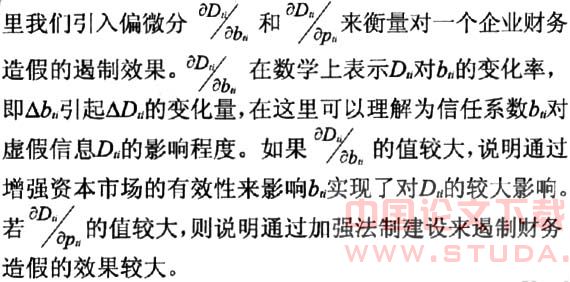 i<1)乘Wi(D)得到的,其中bi可以理解为外部人员对虚假财务信D的信任系数,它主要是由信息使用者所付出的反虚假信息收集成本ci,所决定,可以理解为bi是ci的函数。如果虚假信息能够很容易地被揭露,那么bi和ci都会趋于0;相反,如果揭露虚假信息的难度较大,bi和ci都可能较高。