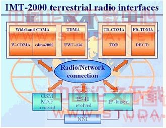 3GPP研究制定并推广基于演变的GSM核心网络的3G标准,即WCDMA、TDS-CDMA等。 GSM系统在向3G演进的过程中,其无线接入网络采用新型WCDMA技术,引入了适于分组数据传输的协议和机制,可支持144Kbps、384Kbps、 2Mbps的数据速率,这是一个革命性的变化。而在网络部分则采用演进的方式,即在初期针对话音和数据业务分别接入到不同的交换网络--电路型和分组型的交换网络。通过提高现有GSM的传输带宽,逐步向提供3G所要求的2Mbps速率的方向努力。目前,3GPP完成了许多标准版本,其中版本5完成了IP多媒体子系统的定义,诸如路由选取及多媒体会话,其下行峰值数据速率可高达8-10Mbps,并具有高的数据吞吐量和低的延时。