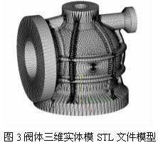 如何得到部件精确的电子数据模型,是CA精铸至关重要的第一步。随着三维CAD软件、逆向工程等技术的发展,这项工作变得简单而且迅捷。在此主要介绍利用IDEAS进行实体建模和数据转换的过程。IDEAS9集成了三维建模与逆向工程建模模块。通过MasterModeler模块可以得到复杂模型(见图2),既可以进行全几何约束的参数化设计,又可进行任意几何与工程约束的自由创新设计;曲面设计提供了包括变量扫掠、边界曲面等多种自由曲面的造型功能。逆向工程Freeform可将数字化仪采集的点云信息进行处理,创建出曲线和曲面,进行设计,曲面生成后可直接生成RPM用文件,也可传回主建模模块进行处理(见图4)。实体文件生成后需转变成STL文件(见图3)以作为RP设备的输入。转换过程应注意选择成型设备名称,通常选用SLA500,三角片输出精度在0.005~0.01之间。采用MagicRp处理时应注意乘上25.4,得到实际设计尺寸。